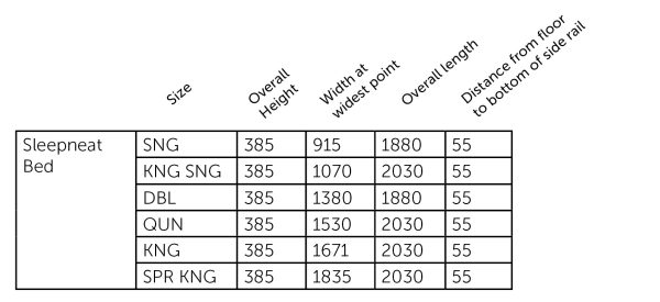 - Sleepmaker Kitset base – some assembly required.